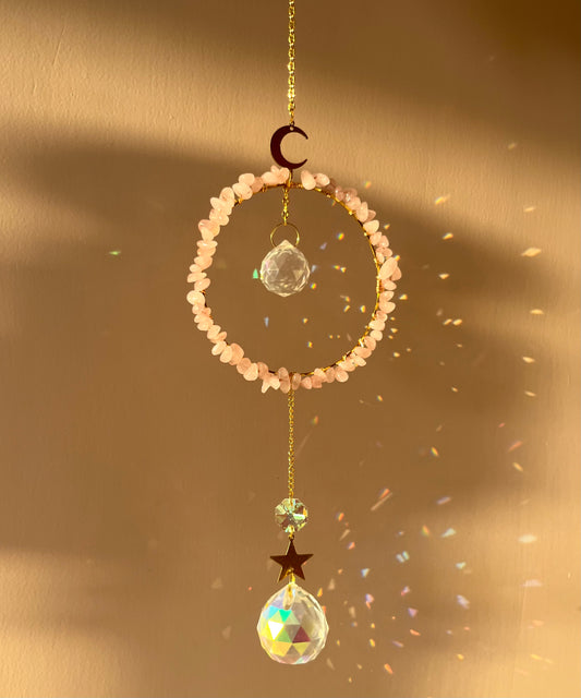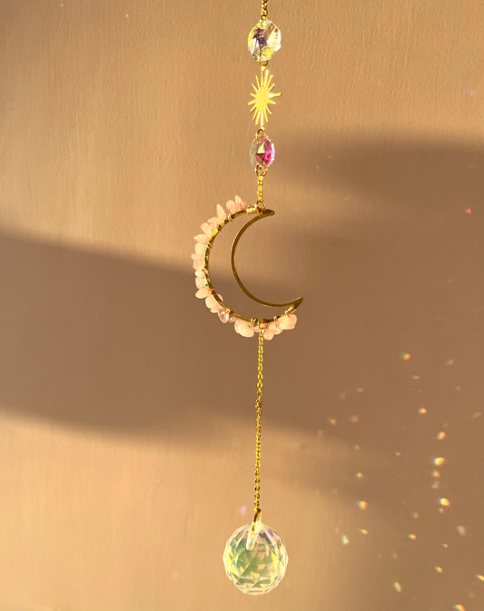 Sold outRose Quartz Moon Suncatcher