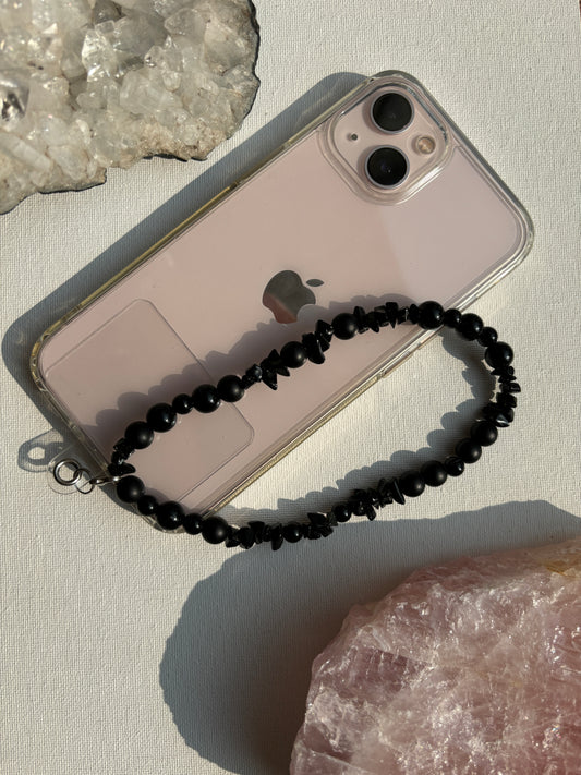 Howlite, Clear Quartz and Black Tourmaline phone charm