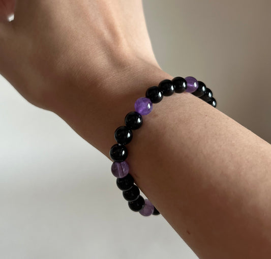 Black Tourmaline & Amethyst Bracelet