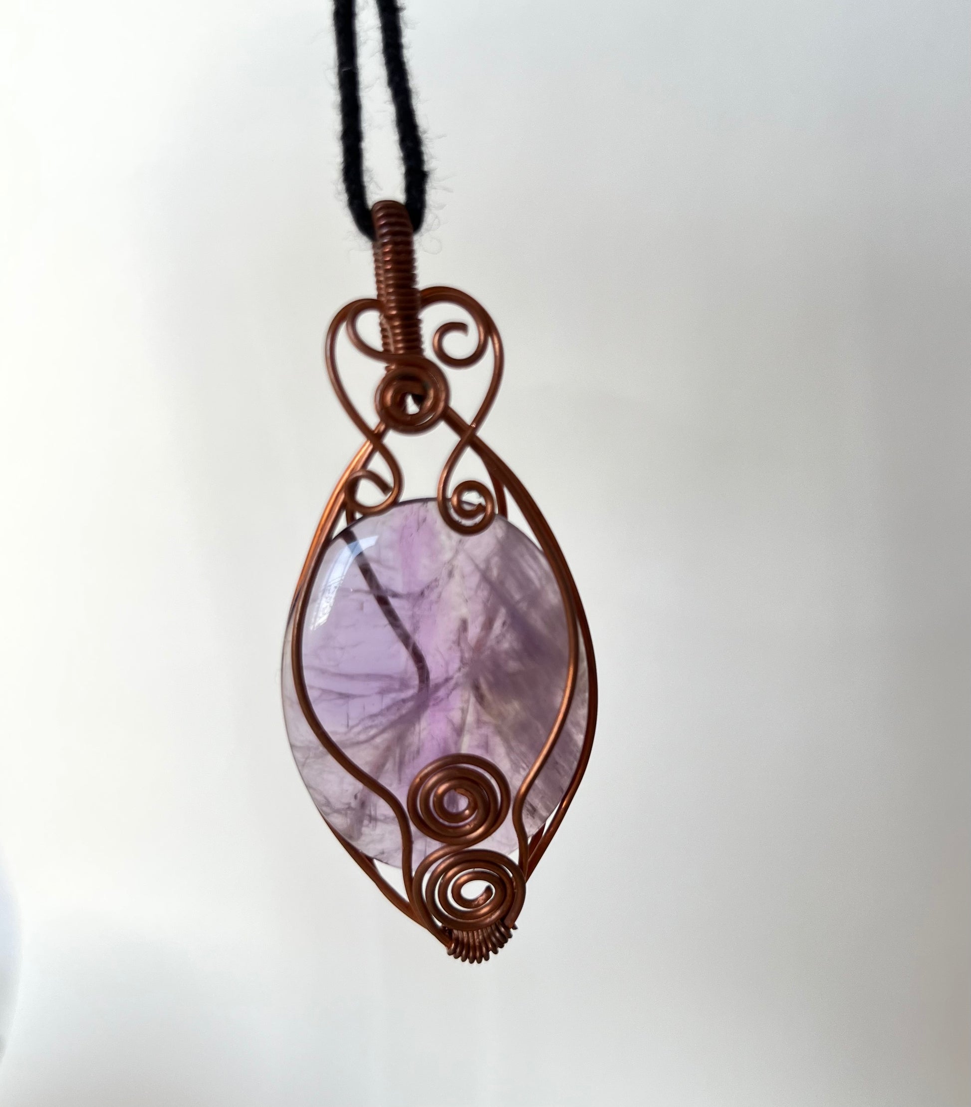 Oval Shaped Amethyst Pendant Hand Made with Copper Wire.