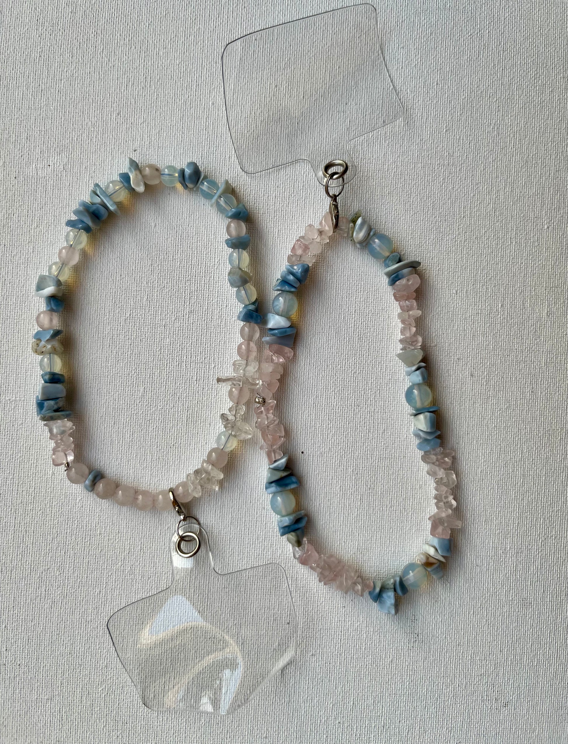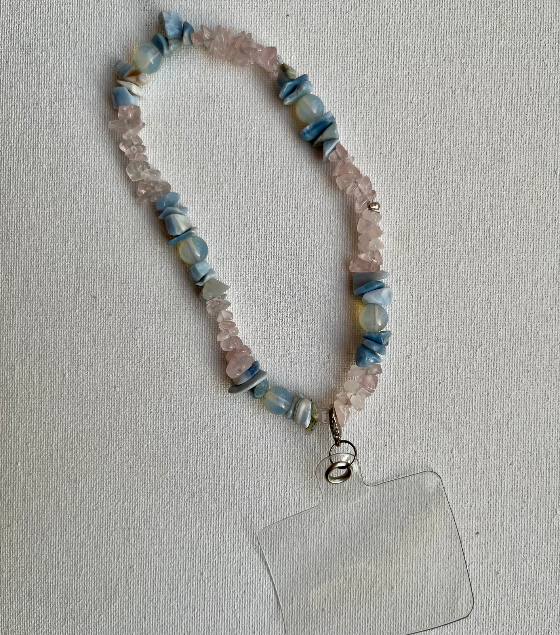 This beautifully balanced charm combines the vibrant energy of Opal, the gentle love of Rose Quartz, and the calming clarity of Blue Opal. Opal brings inspiration and creativity, while Rose Quartz fosters unconditional love and emotional healing. Blue Opal enhances communication and emotional expression. Together, these crystals encourage open-hearted conversations, creative expression, and emotional balance—perfect for a phone charm that keeps you grounded in love and inspired wherever you go.