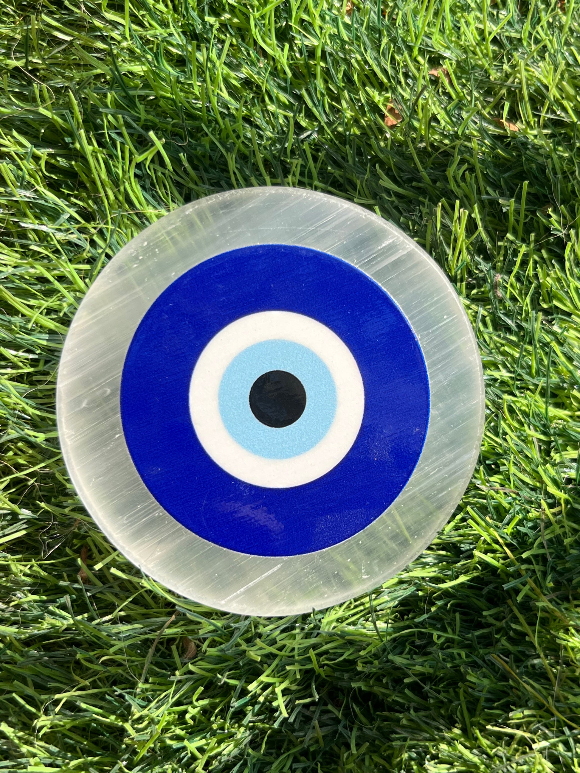 Shield your space with the powerful combination of Selenite and the Evil Eye symbol. This beautifully engraved Selenite plate is designed to cleanse negative energy while offering protection from harmful influences.