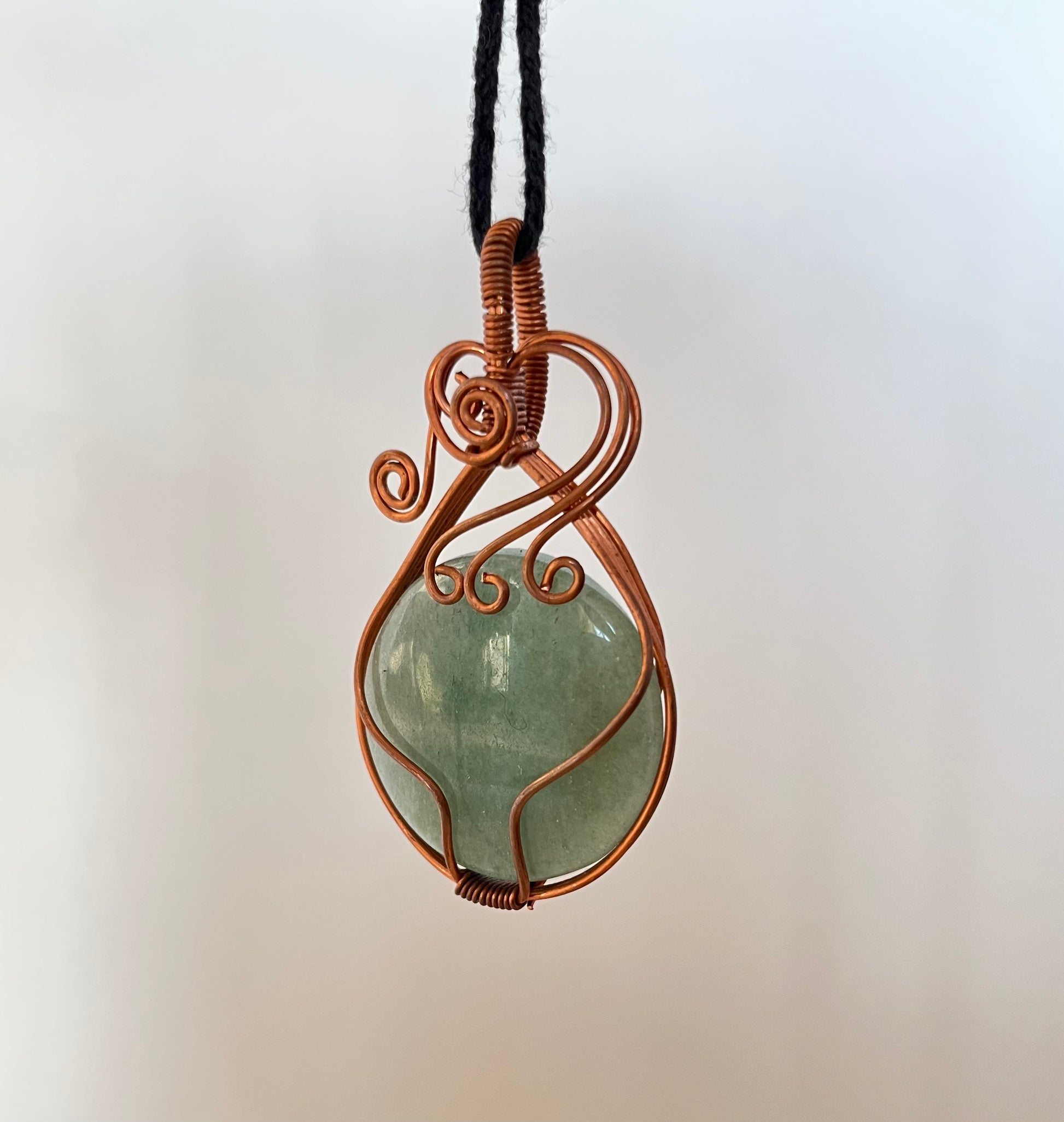 Circle Shaped Green Aventurine Pendant Hand Made with Copper Wire.