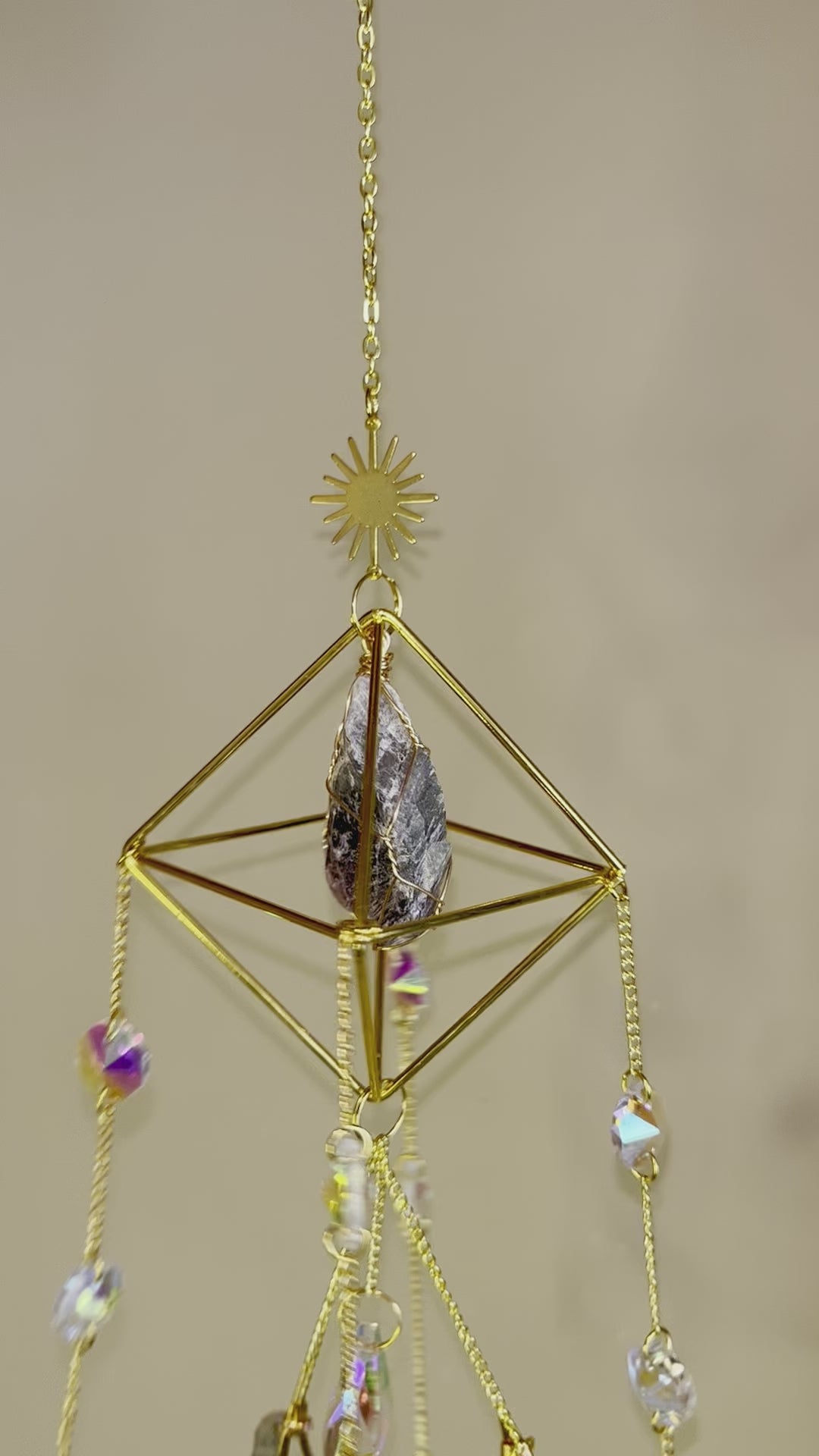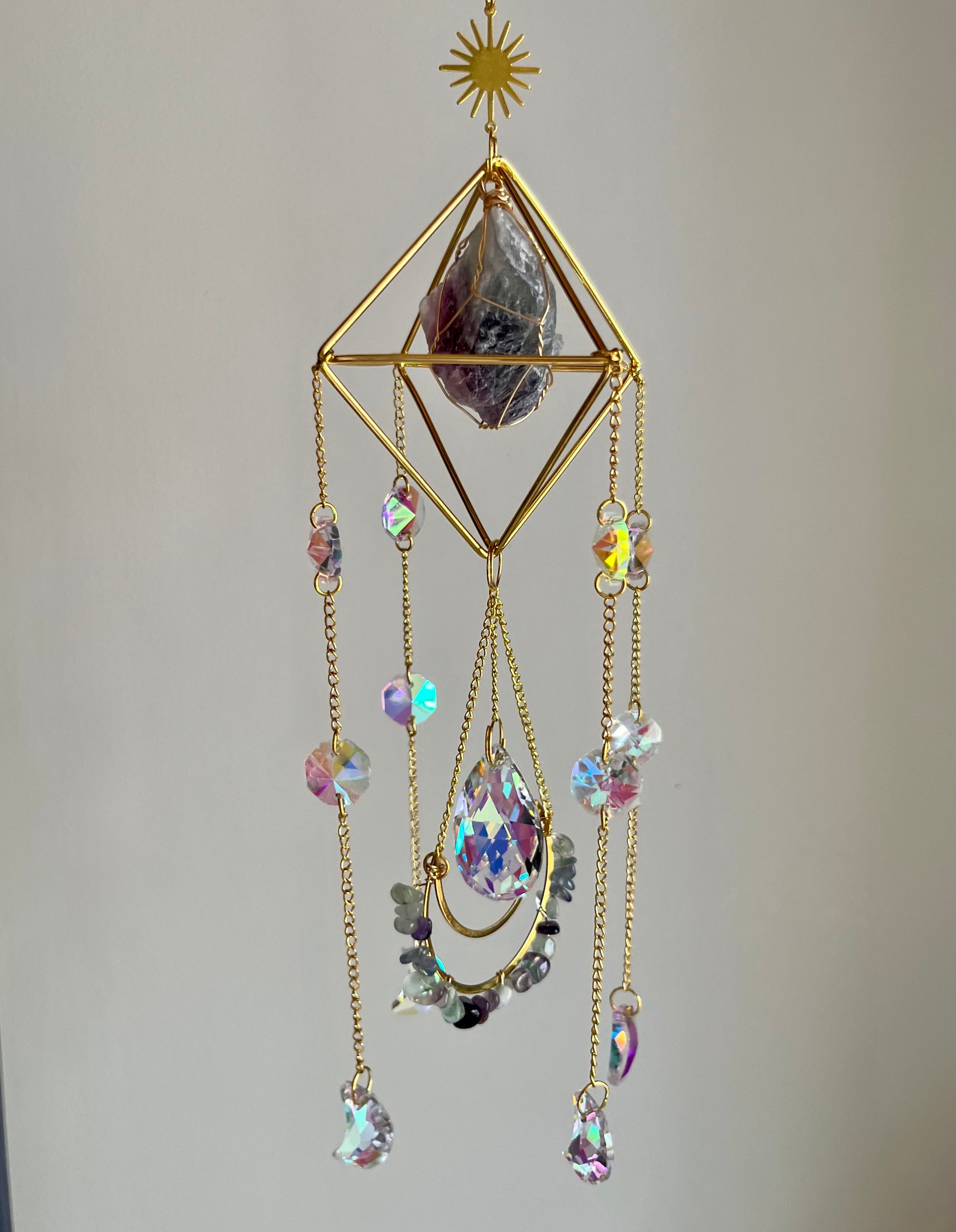 Our handcrafted sun catcher hangings are meticulously made with attention to detail. Featuring a raw crystal at the center and adorned with mini raw crystal chips around the base, they offer a unique and enchanting design.