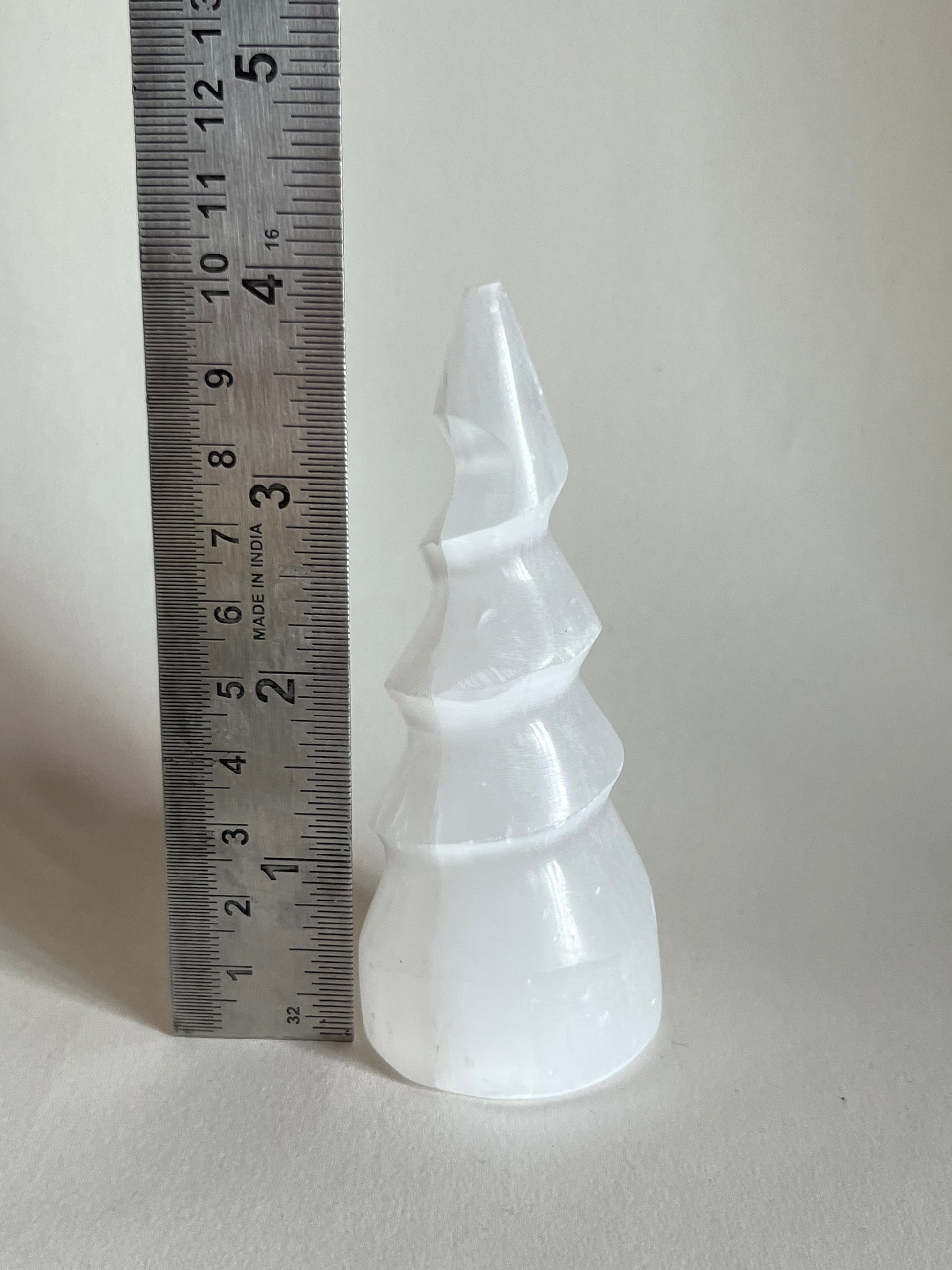 Selenite is a calming stone that instils deep peace and is excellent for meditation or spiritual work. It assists judgement and insight. It clears confusion and aids in seeing the deeper picture. Selenite aligns the spinal column and promotes flexibility.
