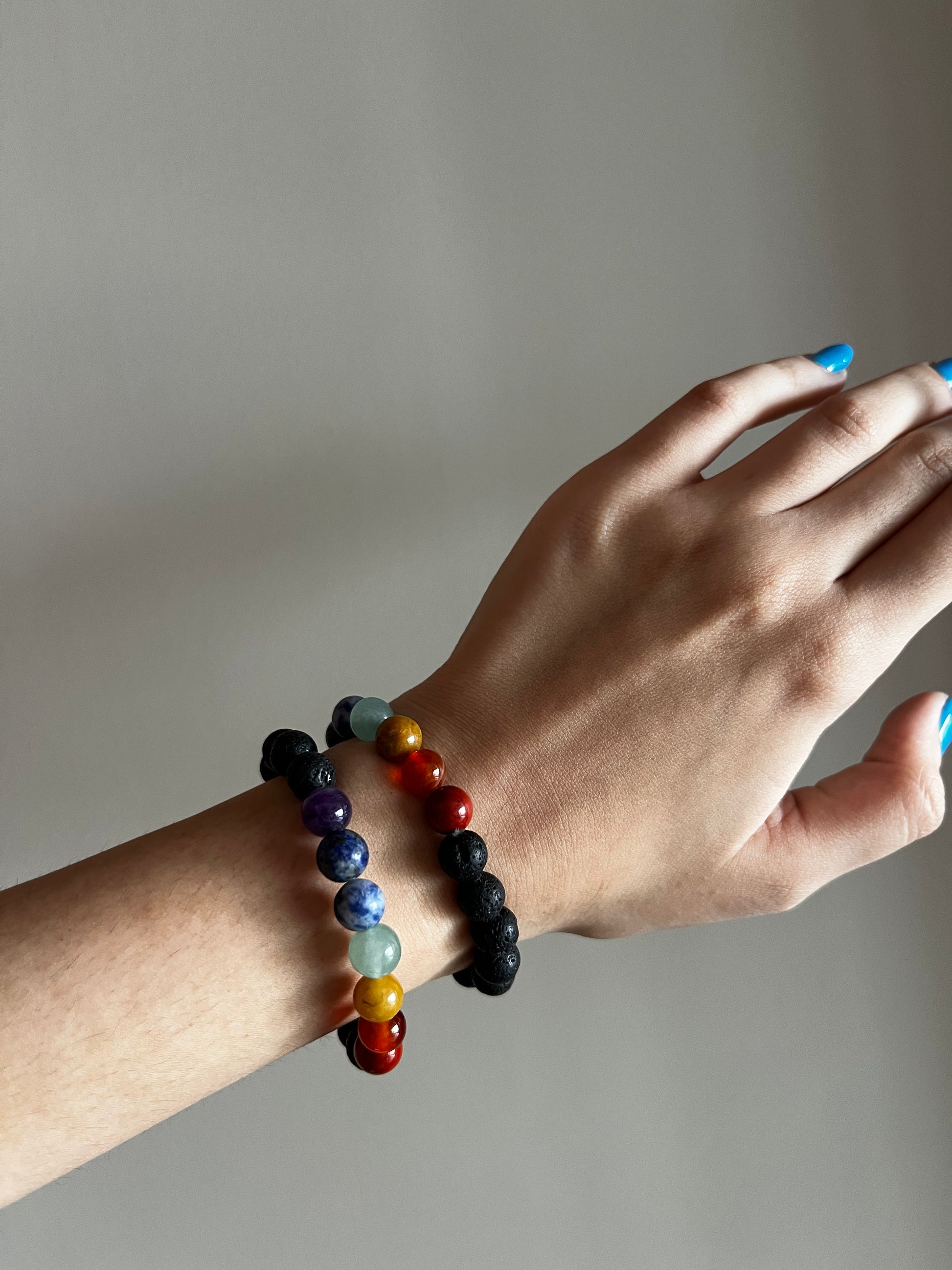 Ground yourself with **Hematite**, boosting courage and vitality from the root chakra. **Yellow Calcite** enhances confidence and clarity at the solar plexus, empowering decisive action. **Carnelian** sparks creativity and passion at the sacral chakra for inspired pursuits. **Red Jasper** provides stability and endurance at the root, fortifying you to overcome challenges. **Lapis Lazuli** fosters clear communication and wisdom at the throat chakra. **Green Aventurine** invites emotional healing and prosperity at the heart chakra. **Amethyst** elevates spiritual awareness through the crown chakra.