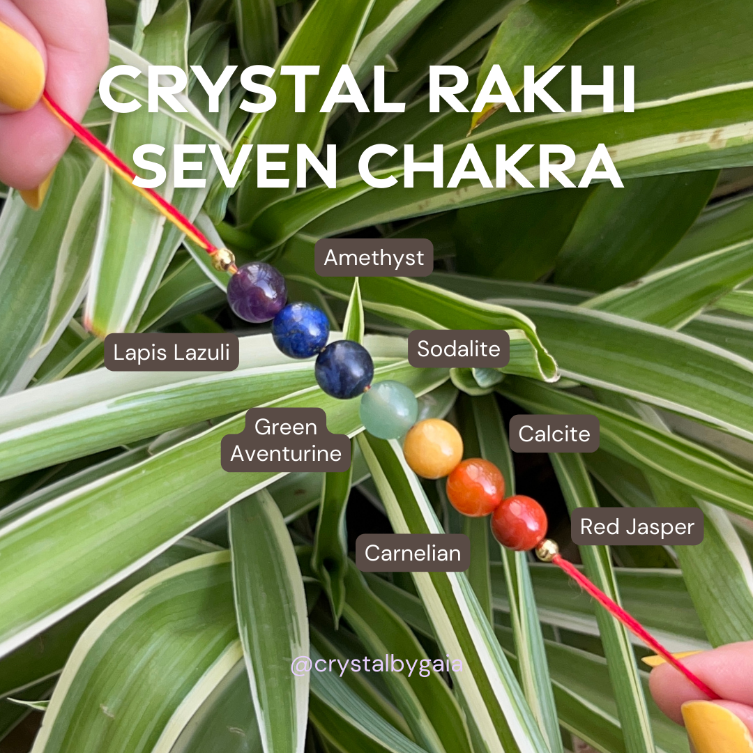 This Seven Chakra Rakhi is designed to balance and align your energy centers, promoting overall well-being and harmony. It contains crystals that resonate with each of the seven chakras, helping you maintain a balanced flow of energy.